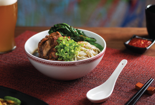 Chi Asian Kitchen offers a wide variety of traditional dishes, including Chinese curry puffs, crafted with ground prime beef and toasted cumin; salt and pepper calamari, made with jalapeño, garlic, and ginger crunch; Japanese-style fried chicken, served with spicy soy mayonnaise and pickled daikon; and potstickers, made with pork and shrimp, pan-fried or steamed.